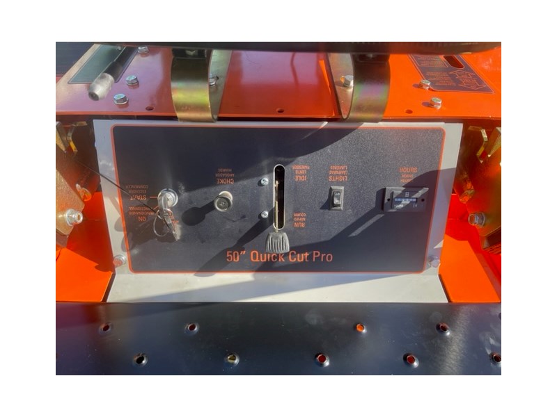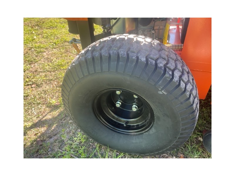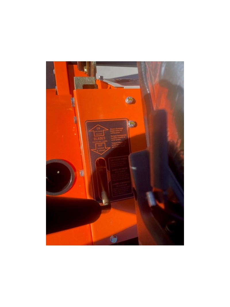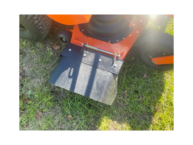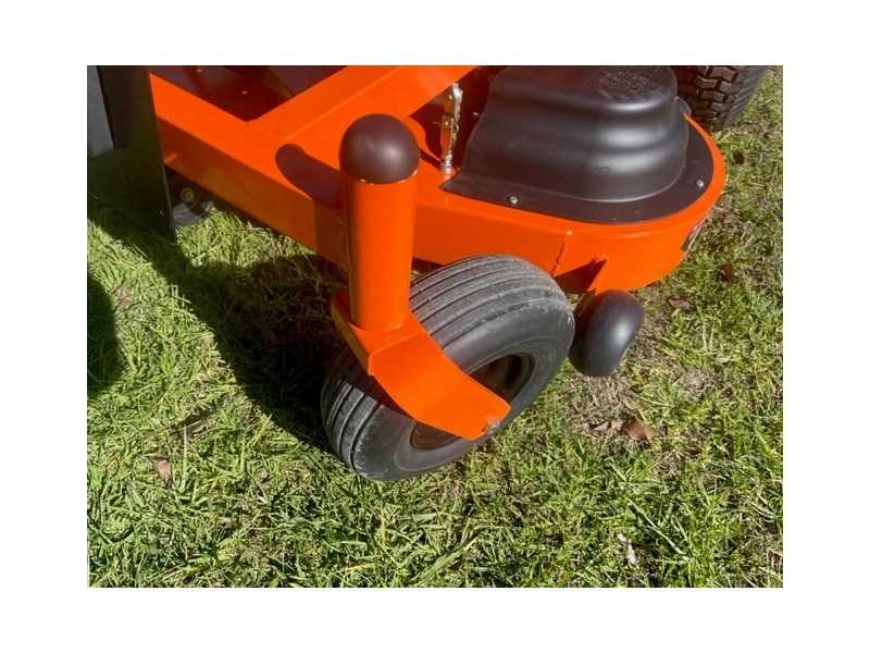Fuel Tank: 15L, Start: Electric, Cut Height: Adjustable 38mm to 127mm (1.5” to 5”), Blade Engagement Manual Clutch, Deck: 12 gauge stamped steel, ROPs, Wheels: 20” x 8” rear tires. 13” x 5” front tires