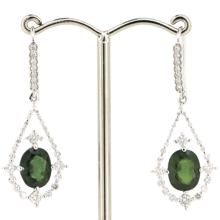 14K YELLOW GOLD, SAPPHIRE AND DIAMOND, DROP EARRINGS. The Designs Feature, 2 Oval Faceted Cut, Dark Green, Sapphires (5.02Ct Tsw, Light-Moderate Natural Inclusions), 4 Claw Set. Surrounding The Centres In Halos And Decorating The Hooks Are, 68 Round Brilliant Cut, Diamonds (1.07Ct Tdw, H Colour, Si-I2 Clarity), Micro-Claw Set. Ring Size M 1/2. Jewellery Valuations Provided By A Third Party Professional Not Directly Associated With Lloyds Auctions at AUD $$16,900.00This Insurance Valuation has been provided by a registered Jewellery Valuer and is intended for insurance purposes only. The valuation amount has no bearing on the auction value of the item. Any questions regarding the valuation should be directed to the issuing Valuer (refer to contact details on the certificate) as Lloyds have no association or relationship with the Valuer or the valuation amount contained within the valuation. Condition: Good - Refer to Images 0645819+5060Crossdock