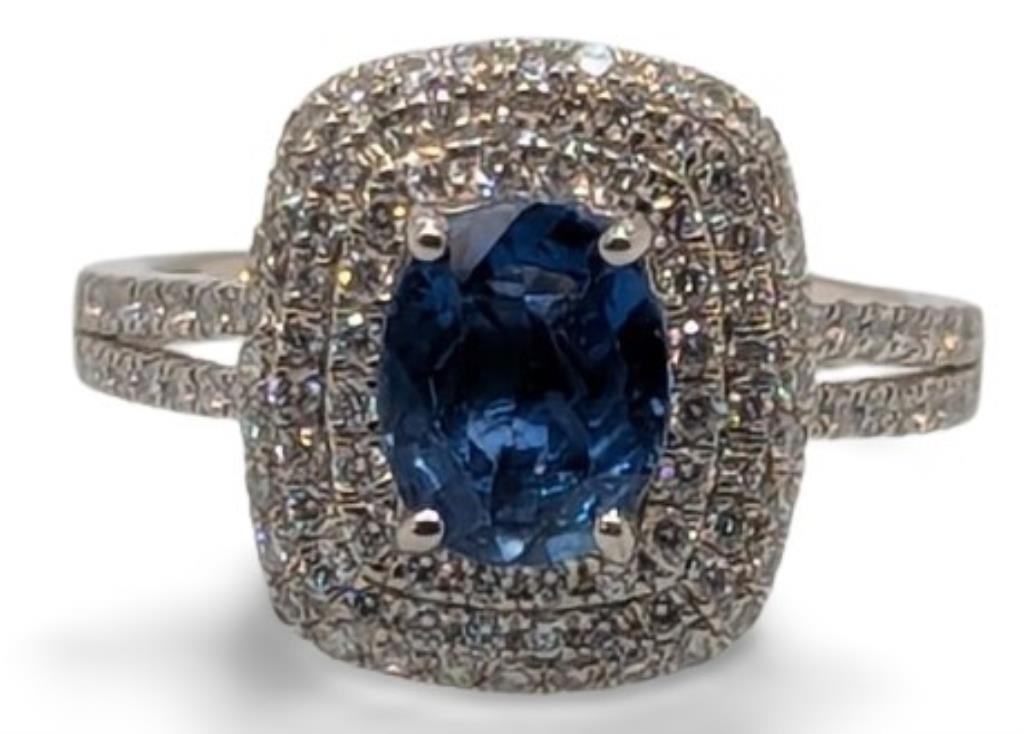 PLATINUM SAPPHIRE AND DIAMOND RING Total Item Weight: 7.4gms Featuring One 1.62Ct Blue Oval Cut Sapphire Surrounded By One Hundred And Fifty Two 0.98Tcw Round Brilliant Cut Diamonds, Colour: F-G, Clarity: Vs2-Si1Accompanied By A Gia Certificate Markings: PT950 Jewellery Valuations Provided By A Third Party Professional Not Directly Associated With Lloyds Auctions at AUD $18737This Insurance Valuation has been provided by a registered Jewellery Valuer and is intended for insurance purposes only. The valuation amount has no bearing on the auction value of the item. Any questions regarding the valuation should be directed to the issuing Valuer (refer to contact details on the certificate) as Lloyds have no association or relationship with the Valuer or the valuation amount contained within the valuation. Condition: Good - Refer Images Please Note: Valuation Certificate Is In Usd.586043+22