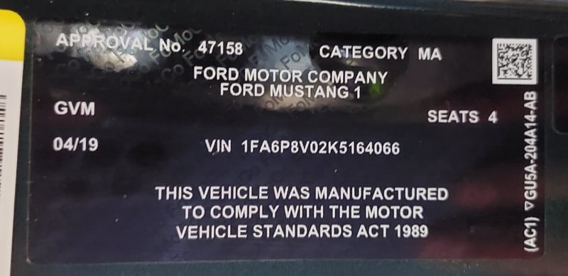 Build KJ023, 1 Of Only 700 Units Limited Edition Mustang Delivered To Australia - Optional Reccro Seats With Green Stitching