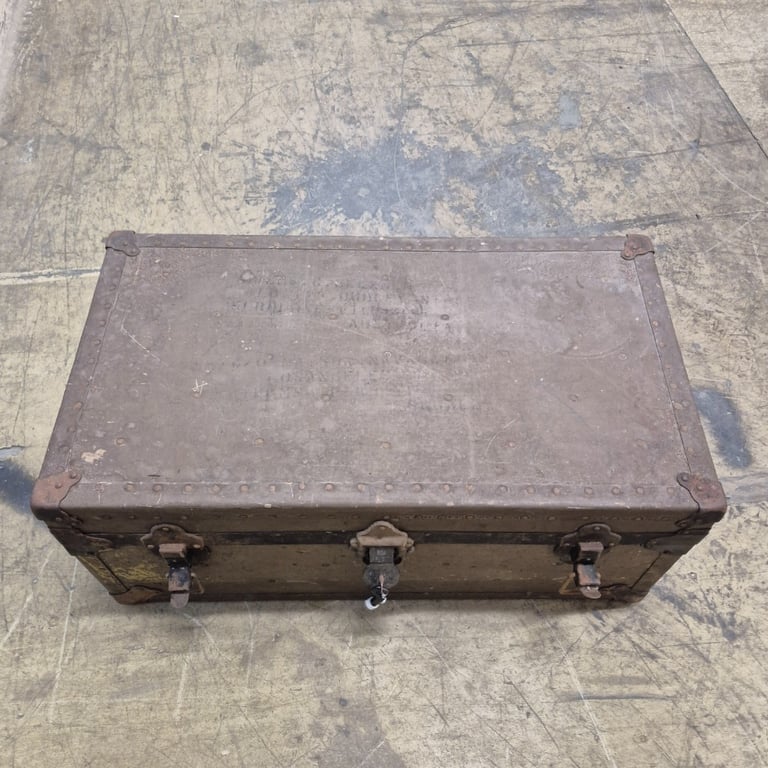 VINTAGE LARGE WOODEN CHEST WITH KEY AND 2 DRAW INSERT