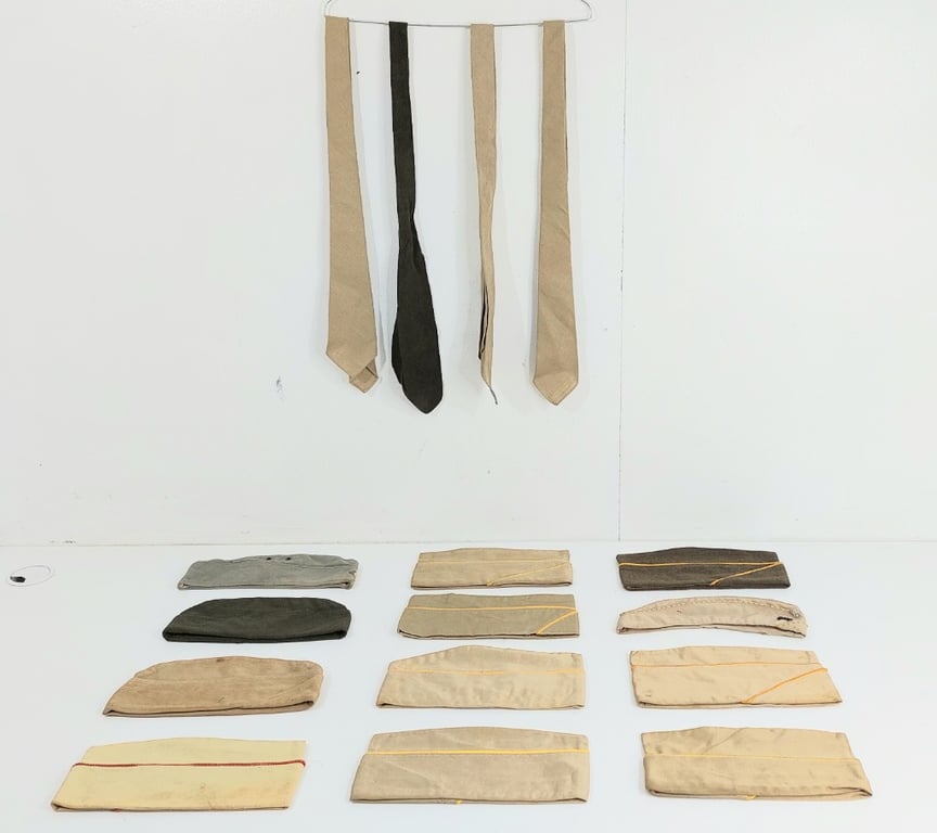 ASSORTED WWII US ARMY GARRISON CAPS, GERMAN MILITARY CAPS AND TIESCondition: Good - Refer To ImagesF2B162958+20