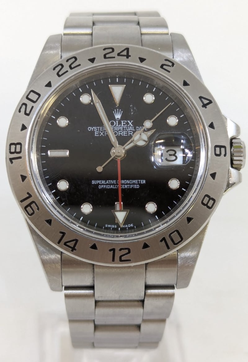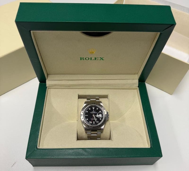 ROLEX EXPLORER II BLACK DIAL 16570 2008 REFERENCE NO. 16570 PRODUCTION YEAR: 2008 CASE DESCRIPTION: STEEL CASE SIZE: 40MM BRACELET: STEEL MOVEMENT: AUTOMATIC BOX: NOT INCLUDED PAPERS: INCLUDED Condition: Good - Refer To Images Comes with a Replica Rolex Box Additional Information: Includes Service Papers And Certificate Of Authentication (2 Years Warranty since 20/1/2024) Condition: Good refer to images 584935+1