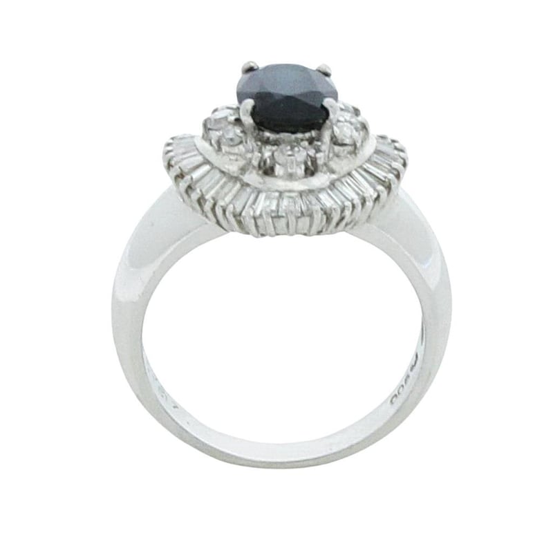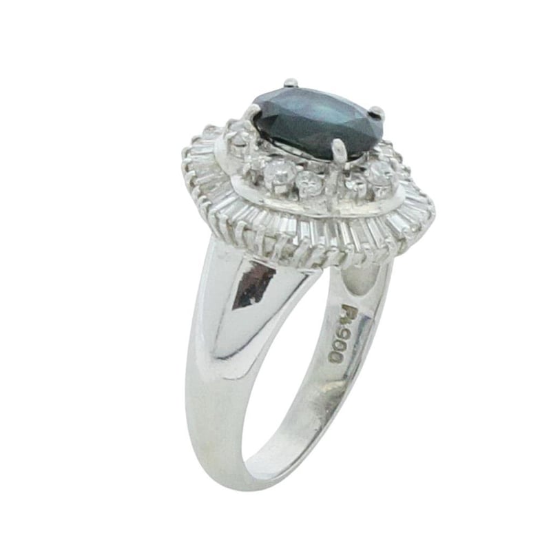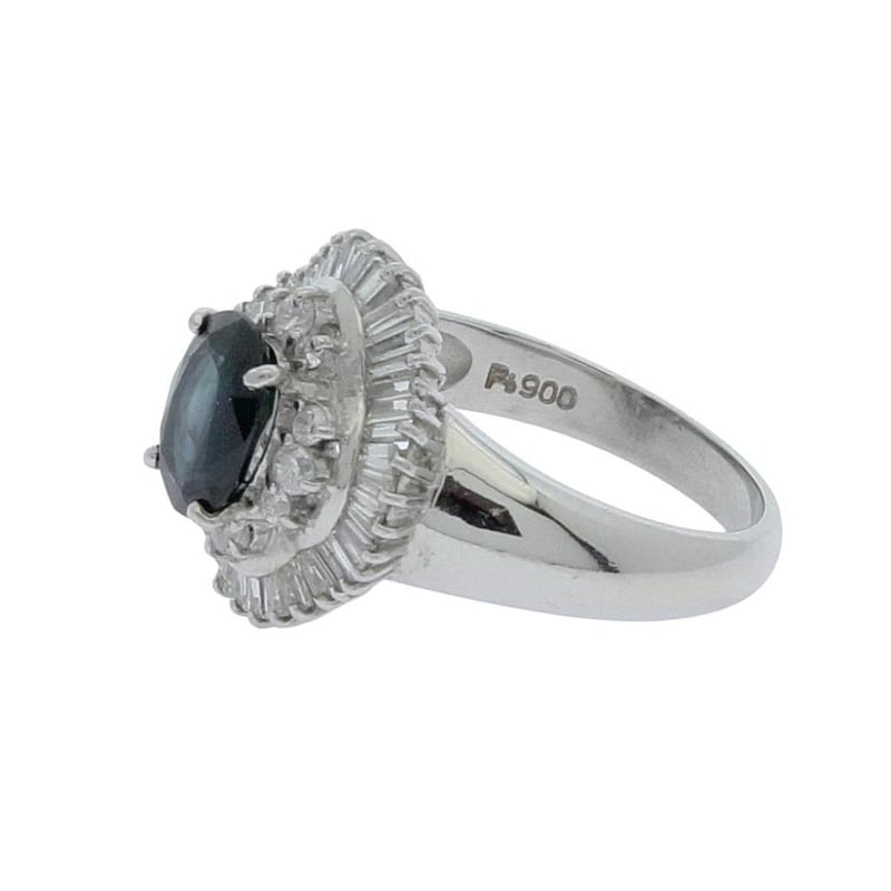 - Platinum Dress Ring, Narrow, Half Round, Tapered Shank With Open Back, 4 Claw Setting, Polished Finish, Stamped (Pt900). Ring Size Is: M.. The Item Contains: