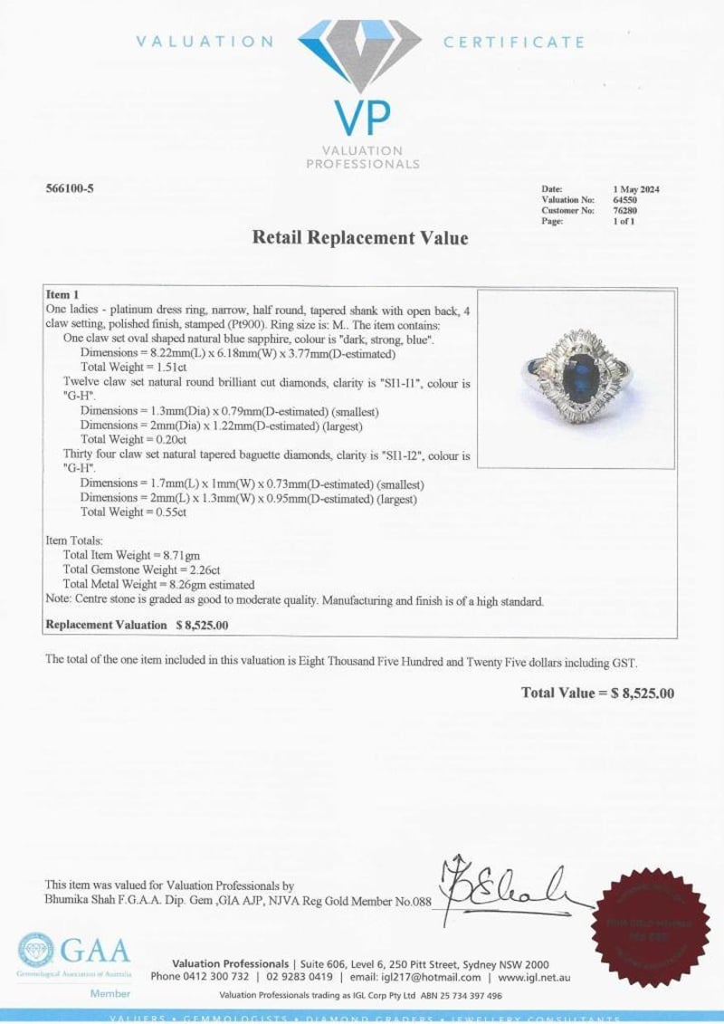 One Claw Set Oval Shaped Natural Blue Sapphire, Colour Is "Dark, Strong, Blue".