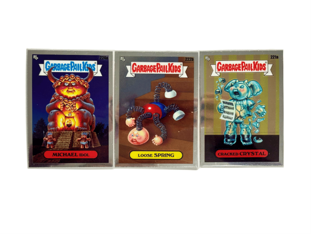 GARBAGE PAIL KIDS CHROME LOT – MICHAEL IDOL, LOOSE SPRING & CRACKED CRYSTALAnother Weird And Wonderful Garbage Pail Kids Chrome Lot Featuring Michael Idol (224A), Loose Spring (222B), And Cracked Crystal (221A). Bright Chrome Finish With Classic Absurdity And Satire.- Garbage Pail Kids Chrome Cards X3- Characters: Michael Idol, Loose Spring, Cracked Crystal- Funny And Grotesque Gpk Art- Collectible Parody Trading CardsSize: Condition: Good - Refer To Images+31