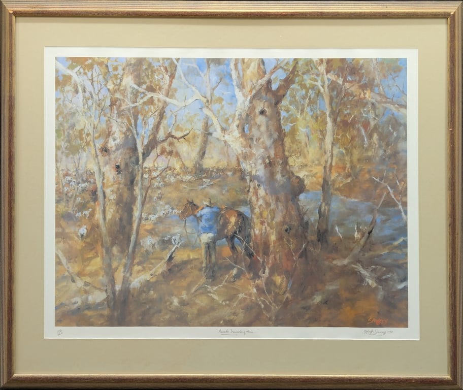 HUGH SAWREY (1919 - 1999) Limited Edition Lithograph On Paper Title: Peacocks Travelling Mob Image Size: 65cm x 86cm Frame Size: 94cm x 114cm Edition: 170/200 Signature Details: Signed Lower Right Condition: Good - Refer To Images 584890+3
