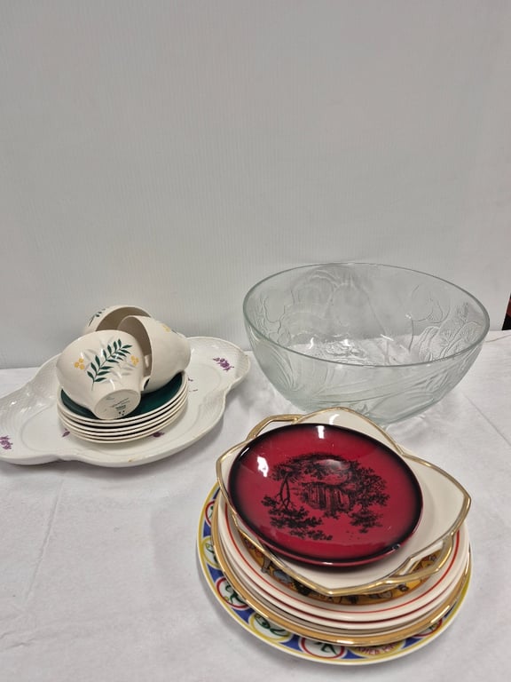 COLLECTIONOF VINTAGE PLATES AND LARGE GLASS BOWL