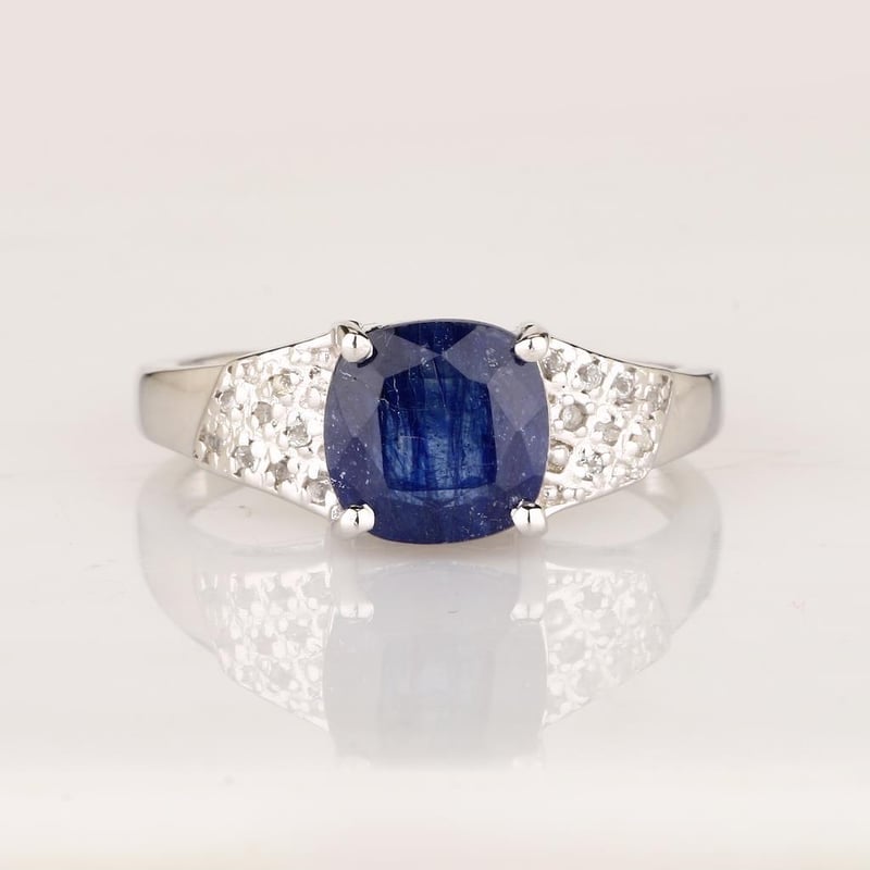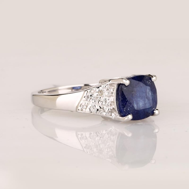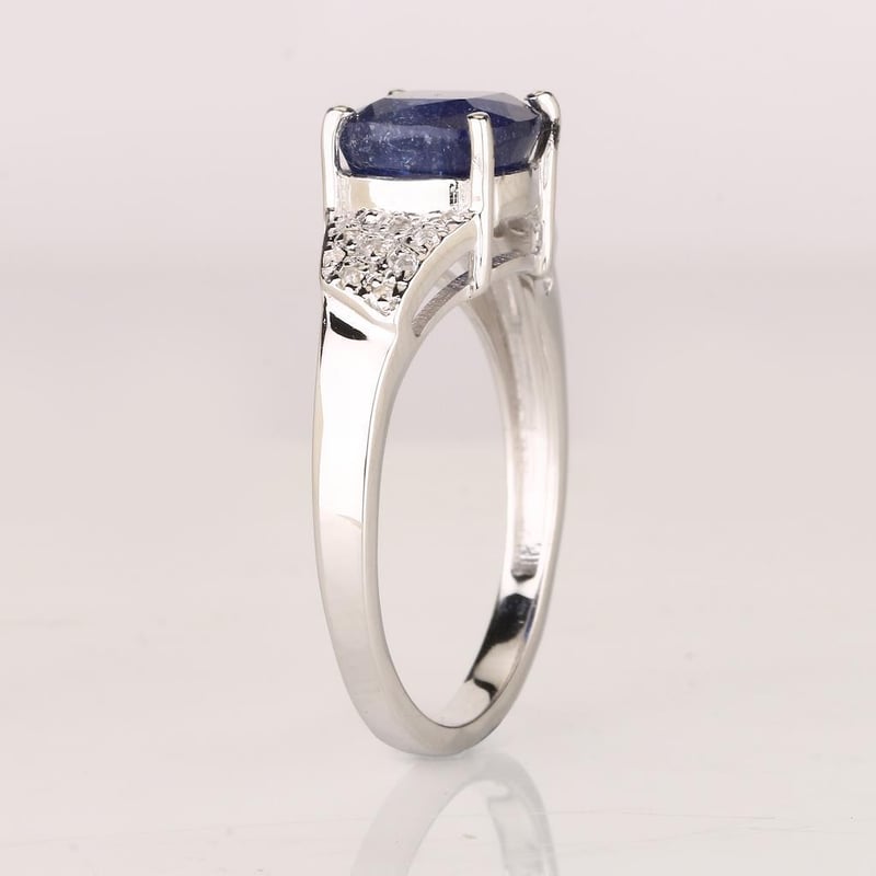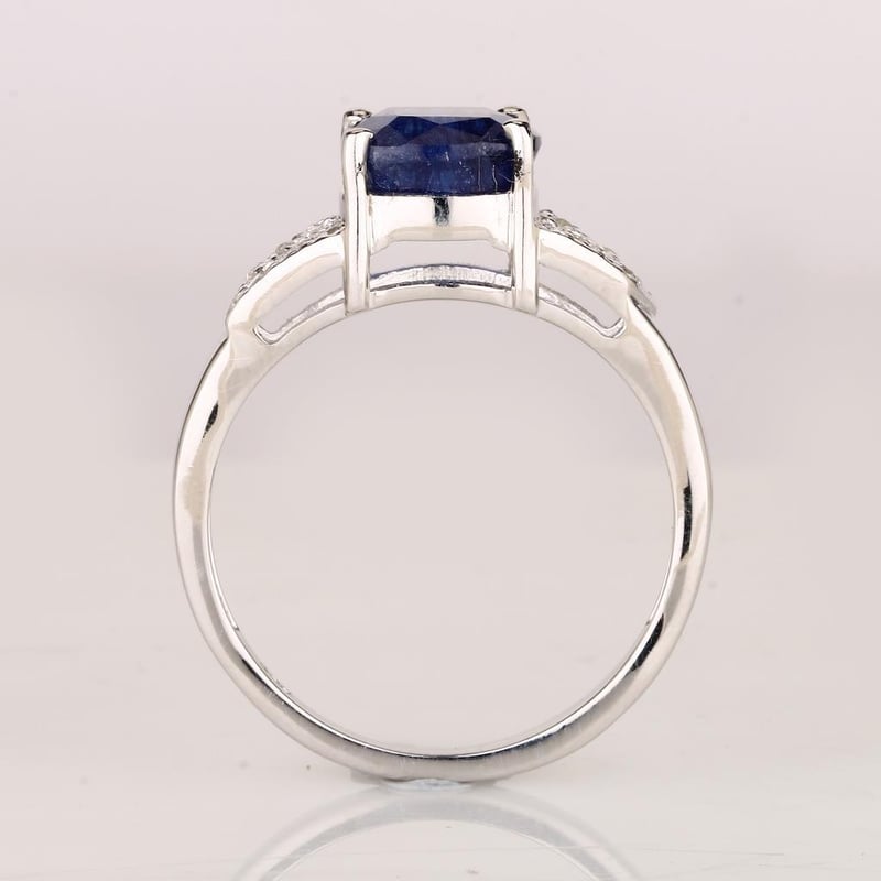 Glass filled Sapphire, White Topaz Elegance in Silver: 925 Silver Ring with Rhodium Plating