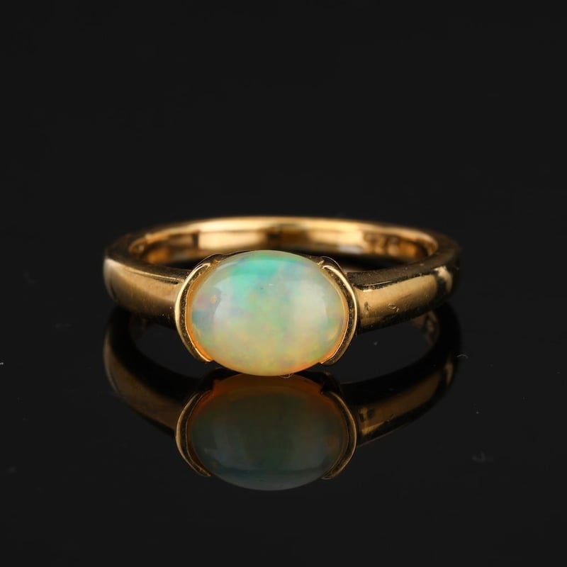 Ethiopian Opal Elegance Unveiled: 925 Silver Ring with Opulent Yellow Gold Plating