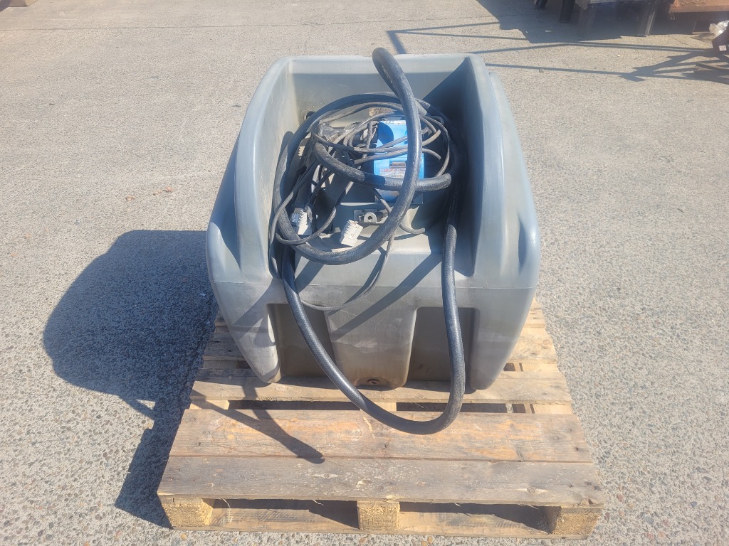 Description: Used fuel pod, with hose and pump handle, approximate dimensions L 850mm x W 700mm x H 760mm.