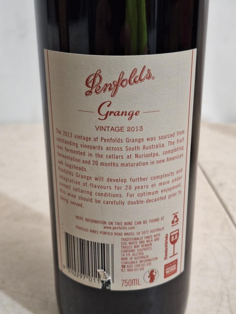 PENFOLDS GRANGE BIN 95, VINTAGE 2013, BOTTLE NO CK074, 750ML, 14%VOL