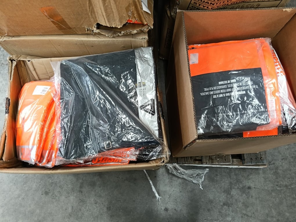 9x Boxes of Workwear – Approx. 20-50 Items per Box, Sizes Vary From S to 4XL
