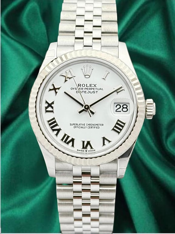 ROLEX DATEJUST 31 STEEL WHITE ROMAN DIAL JUBILEE 278274 | 2025 | 31MM Price Guide - $19,500 - $21,000 Brand : Rolex Reference : 278274 Model : Datejust 31 Year : 2025 Case Size : 31Mm Power Reserve : 55H Dial : White Bezel : White Gold Case : Steel Bracelet : Steel Papers : Yes Box : Yes Condition: Good - Refer Images 0 488240+10