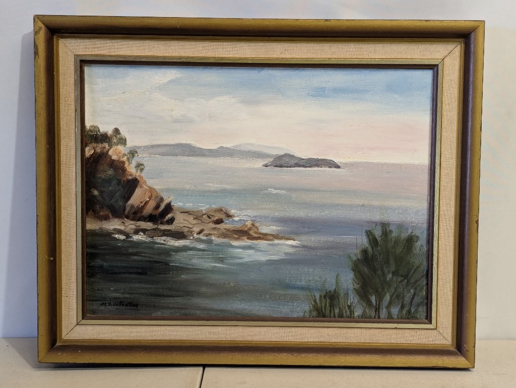 Framed artwork, timber frame, ocean scene, artist: M. D. Vallentine