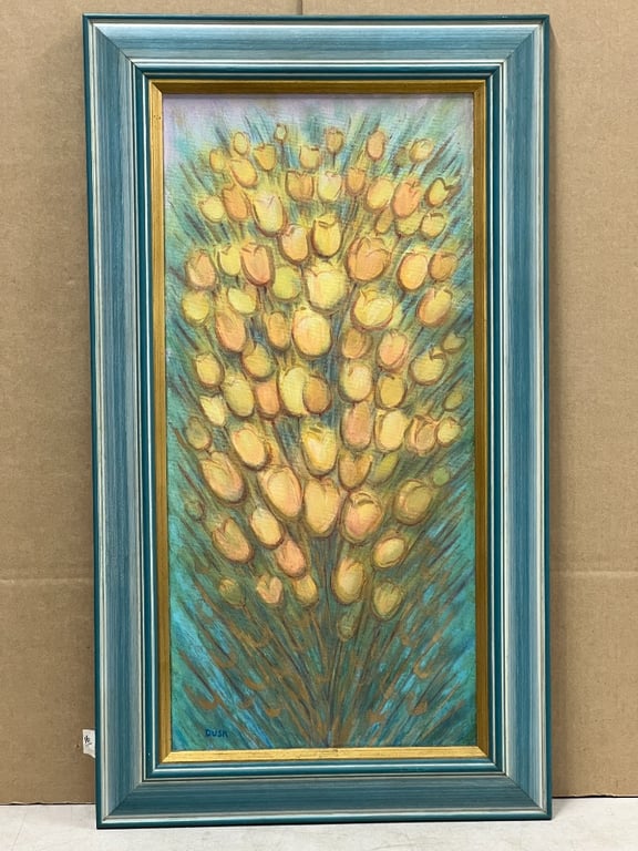 DUSK Original Acrylic Painting On Canvas Title: Tulips Image Size: 40cm x 70cm Item Size: Height: 40cm, Width: 70cm, Depth: 3cm, Weight: 1Kg Signature Details: Signed Lower Right Condition: Good - Refer To Images 587631+8