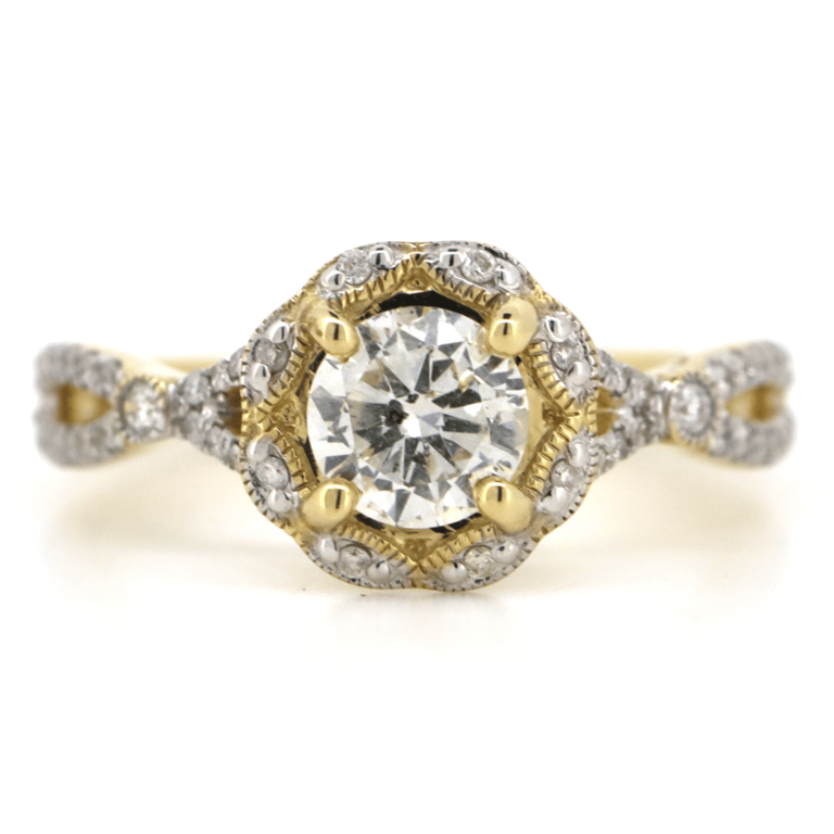 14K YELLOW GOLD AND DIAMOND, ORNATE HALO RING. 14K Yellow Gold And Diamond, Ornate Halo Ring. The Centre Features, One Round Brilliant Cut, Diamond (0.71Ct, I-J Colour. I1-Clarity, ), 4 Claw Set. Surrounding The Centre In A Halo And Decorating The Band Are, 54 Round Brilliant Cut, Diamonds (0.215Ct Tdw, H-J Colour, Si-I2 Clarity), Bead/Bezel Set. Ring Size N. Valuations Provided by an Independent Third-Party Professional Not Directly Associated With Lloyds Auctions at AUD $$16,500.00This valuation has been conducted by an independent third-party professional. The valuation amount is an assessment by the issuing valuer and does not reflect the auction value of the item. Any inquiries regarding the valuation should be directed to the issuing valuer (refer to contact details on the certificate), as Lloyds Auctions has no affiliation or influence over the valuation, the valuer, or the stated amount. Condition: Good - Refer Images 0645823+3295