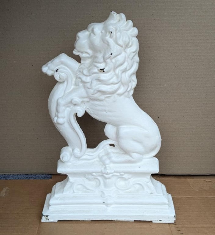 VINTAGE VICTORIAN CAST IRON RAMPANT LION DOOR STOPPER 38CM TALL 25CM WIDE