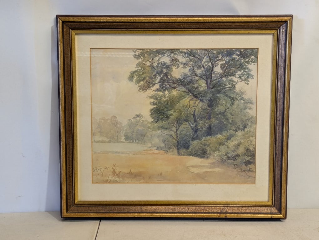 Framed artwork, timber frame, country scene, artist: J Reynolds