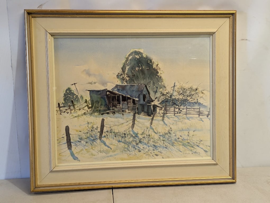 Framed artwork, timber frame, title: Frost, artist: Rufus Morris