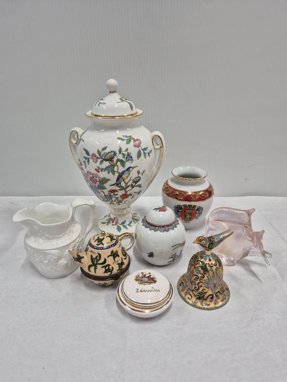 COLLECTION OF VINATGE PORCELIEN, METAL BELL, TEAPOT AND MORE