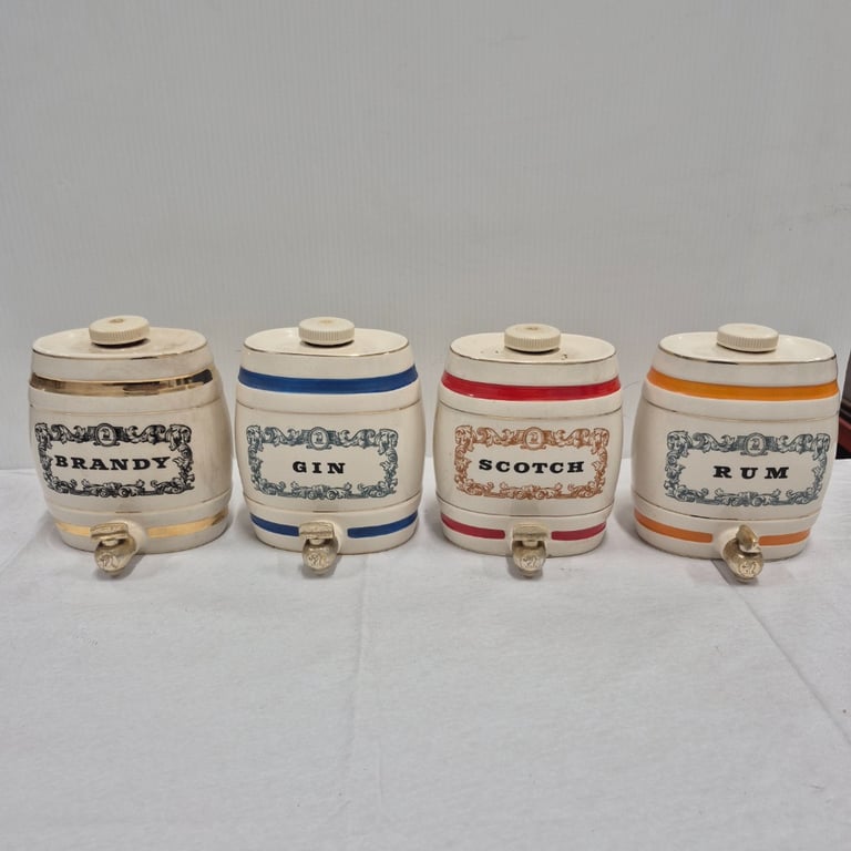 4 X VINTAGE CERAMIC BARREL DECANTERS