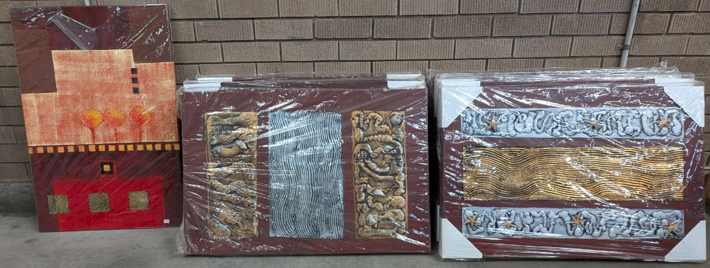 TEN ORIGINAL OIL PAINT AND MIXED MEDIA ARTWORKS ON CANVASArtwork Sizes Approx: 60Cm X 90Cm, Artworks Stretched On FrameNote: Slight Variation With Artworks584844+8