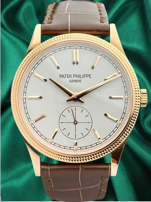 PATEK PHILIPPE CALATRAVA CLOUS DE PARIS ROSE GOLD 6119R-001 | 2024 | 39MM Price Guide - $49,000 - $55,000 Brand : Patek Philippe Reference : 6119R-001 Model : Calatrava Year : 2024 Condition : Like-New Case Size : 39Mm Power Reserve : 65H Dial : Silver (Solid) Bezel : Rose Gold Case : Rose Gold Bracelet : Crocodile Skin Papers : Yes Box : Yes 488259+39
