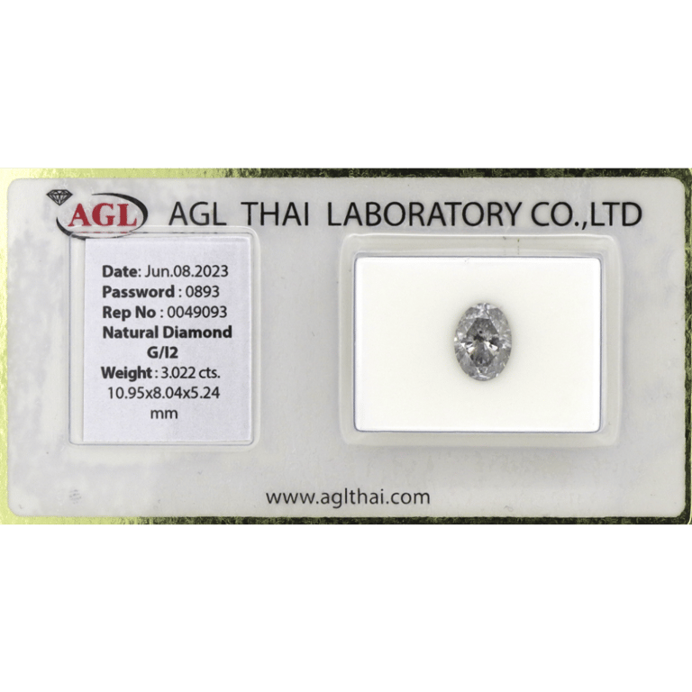 3.022CT CERTIFIED, NATURAL DIAMOND. Oval Brilliant Cut, G Colour, P2 Clarity, Loose, Unset. Stone Comes Sealed With Agl Report: 0049093. Valuations Provided by an Independent Third-Party Professional Not Directly Associated With Lloyds Auctions at AUD $$43,900.00This valuation has been conducted by an independent third-party professional. The valuation amount is an assessment by the issuing valuer and does not reflect the auction value of the item. Any inquiries regarding the valuation should be directed to the issuing valuer (refer to contact details on the certificate), as Lloyds Auctions has no affiliation or influence over the valuation, the valuer, or the stated amount. Condition: Good - Refer Images 0645829+3381