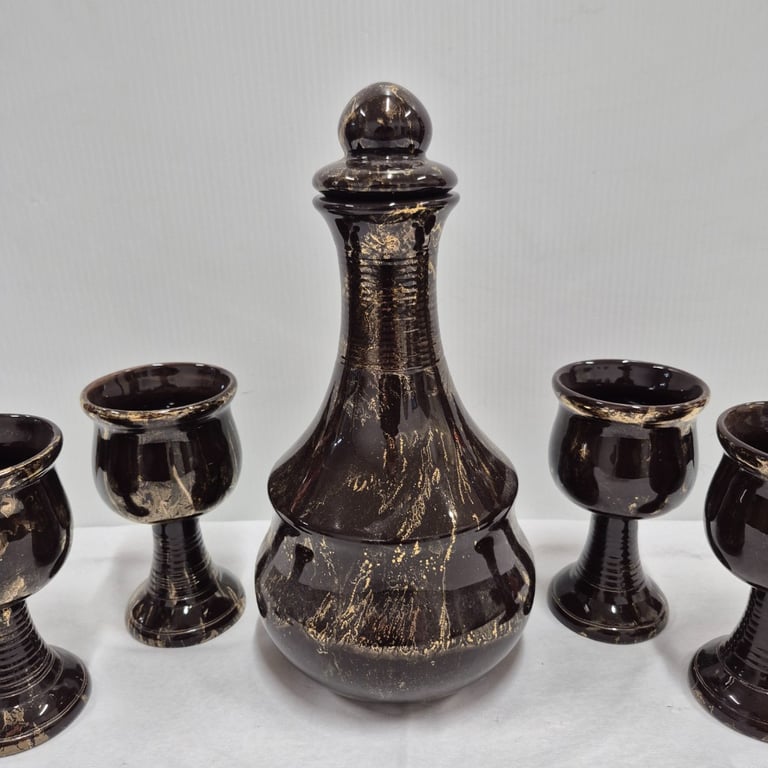 VINTAGE CERAMIC DECANTER AND 4 GOBLETS Condition: Good - Refer To Images LOCATED RACK 10B 587672+3
