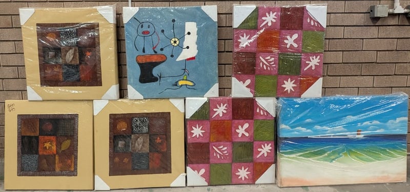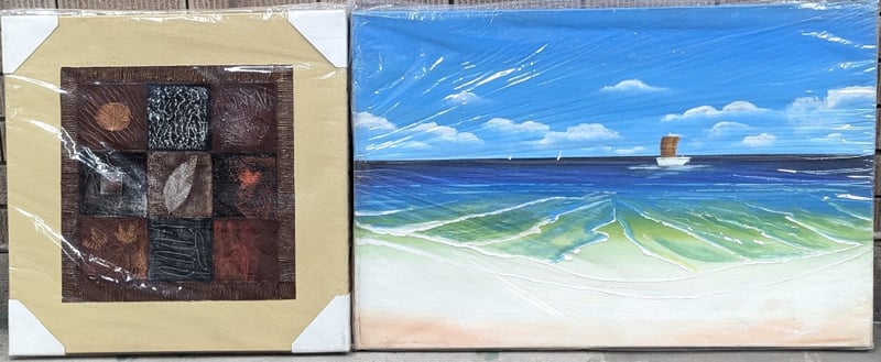 SEVEN OIL PAINTING ON CANVAS ARTWORKS Artworks Feature Various Themes Artworks Stretched And Ready To Hang Artwork Sizes Include: 60Cm X 60Cm - 60Cm X 90Cm Condition: Good - Refer To Images 584844+30