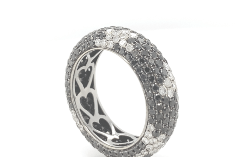 18CT WHITE GOLD DIAMOND BAND – 4.00CT TOTAL, BLACK & WHITE DIAMONDS, VALUATION A$14,670