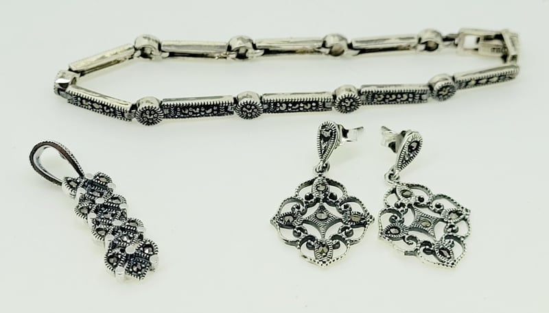 STERLING SILVER BRACELET EARRINGS AND PENDANT