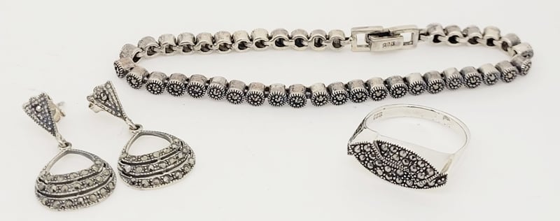 SILVER JEWELLERY INCLUDING BRACELET, RING AND A PAIR OF EARRINGSCondition: Good - Refer To Images488252+72