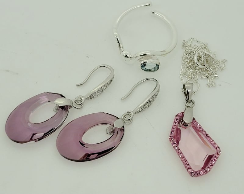 STERLING SILVER JEWELLERYIncludes - 1X Pendant1X Necklace1X Pair Of Earrings1X RingMarkings: 925Condition: Good - Refer To Images488252+36
