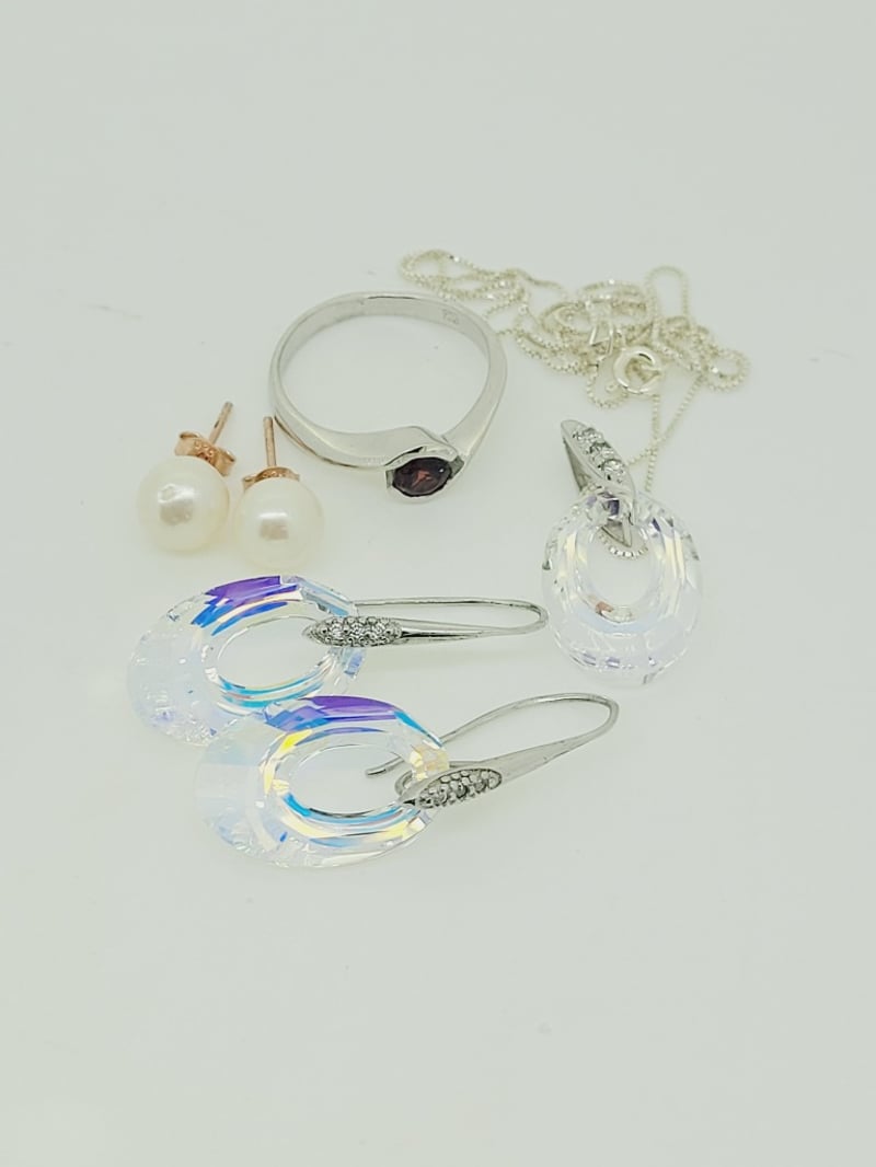 ASSORTED SILVER JEWELLERYIncludes - 2X Pairs Of Earrings 1X Ring1X NecklaceCondition: Good - Refer To Images488252+50