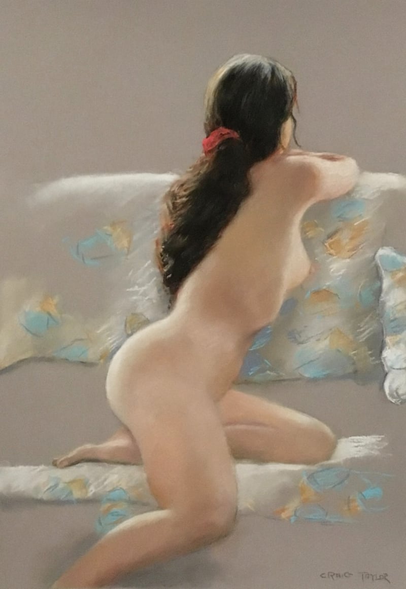 CRAIG TAYLOR (1952- ) Original Pastel Drawing On Canson Paper Title: Young Woman On A Sofa Image Size: 56cm x 38cm Signature Details: Signed Lower Right Condition: Good - Refer To Images 488230+10