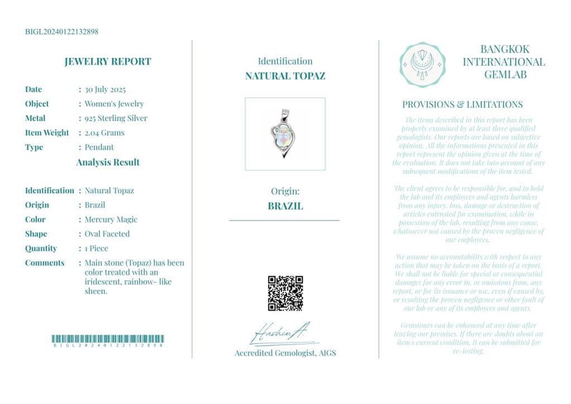 NATURAL TOPAZ PENDANT ON 925 SILVER - WITH DIGITAL CERTIFICATE ONLY
