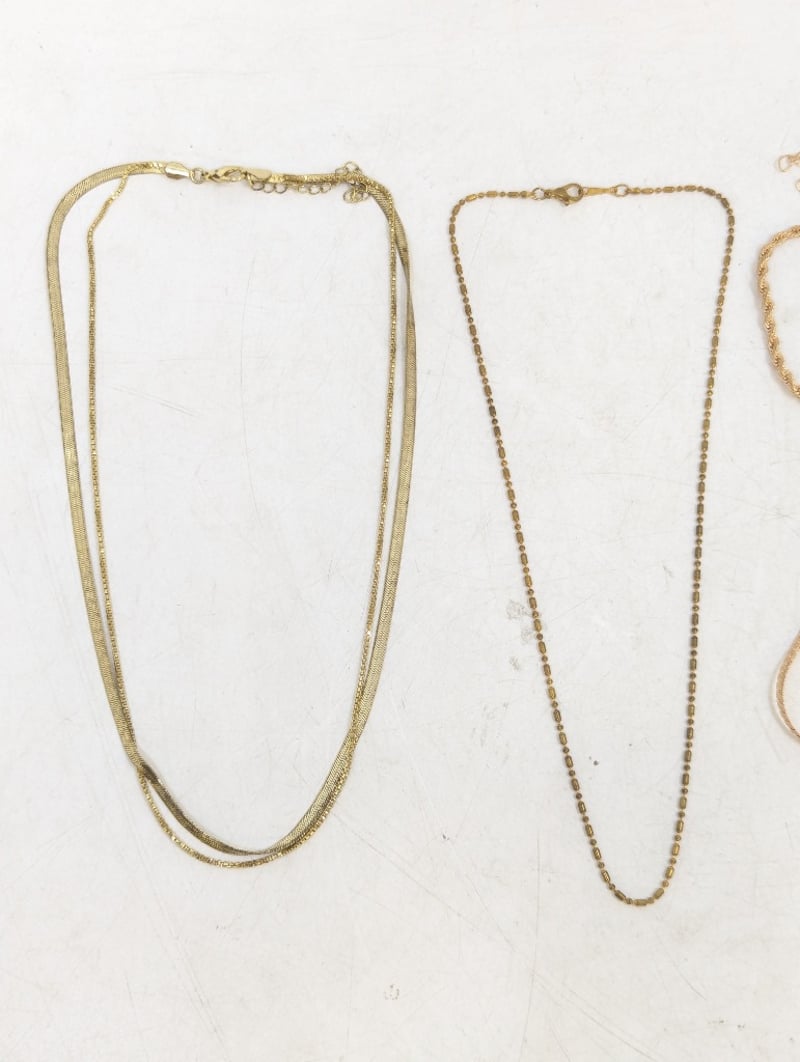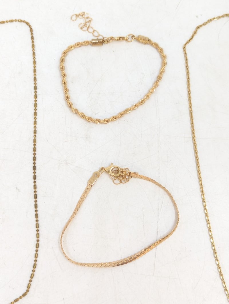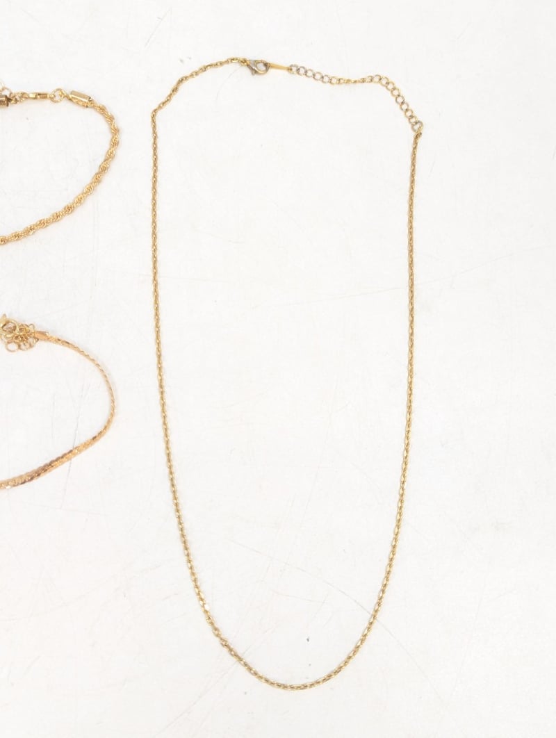 THREE YELLOW GOLD PLATED CHAIN NECKLACE AND TWO YELLOW GOLD PLATED CHAIN BRACELETS 584947+1