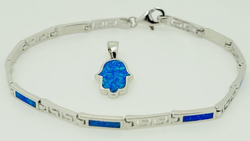 STERLING SILVER CREATED OPAL PENDNAT AND BRACELET