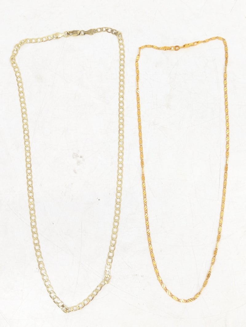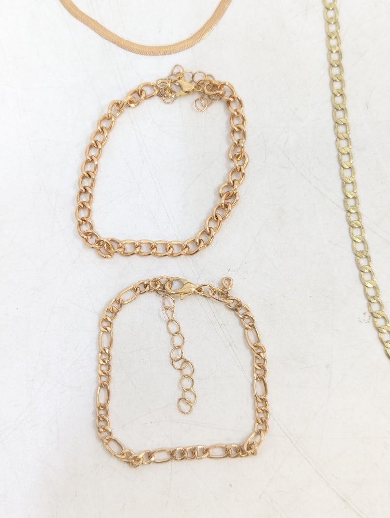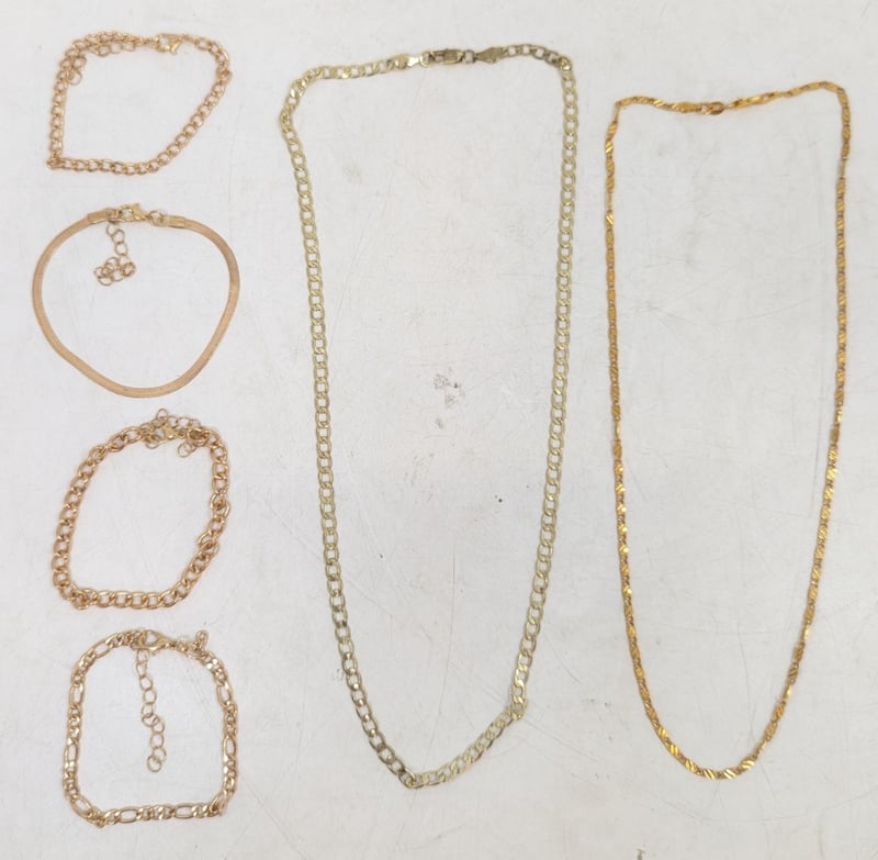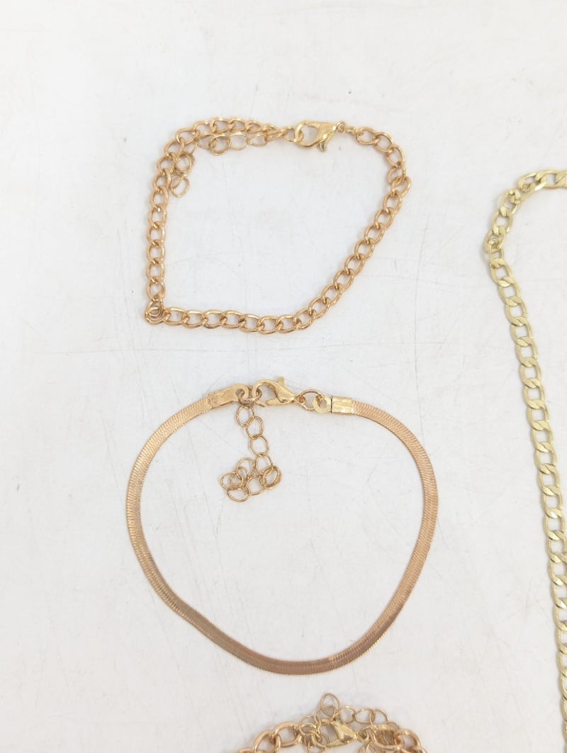 FOUR GOLD PLATED BRACELETS AND TWO GOLD PLATED CHAIN NECKLACE