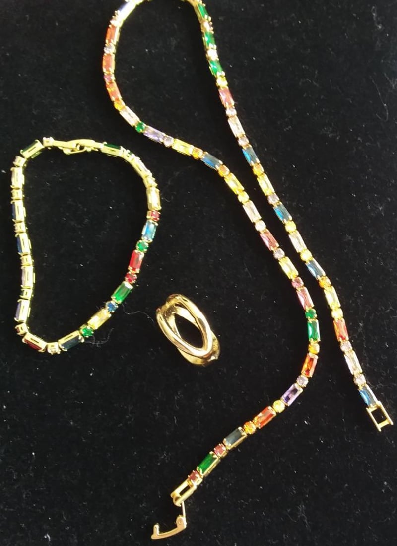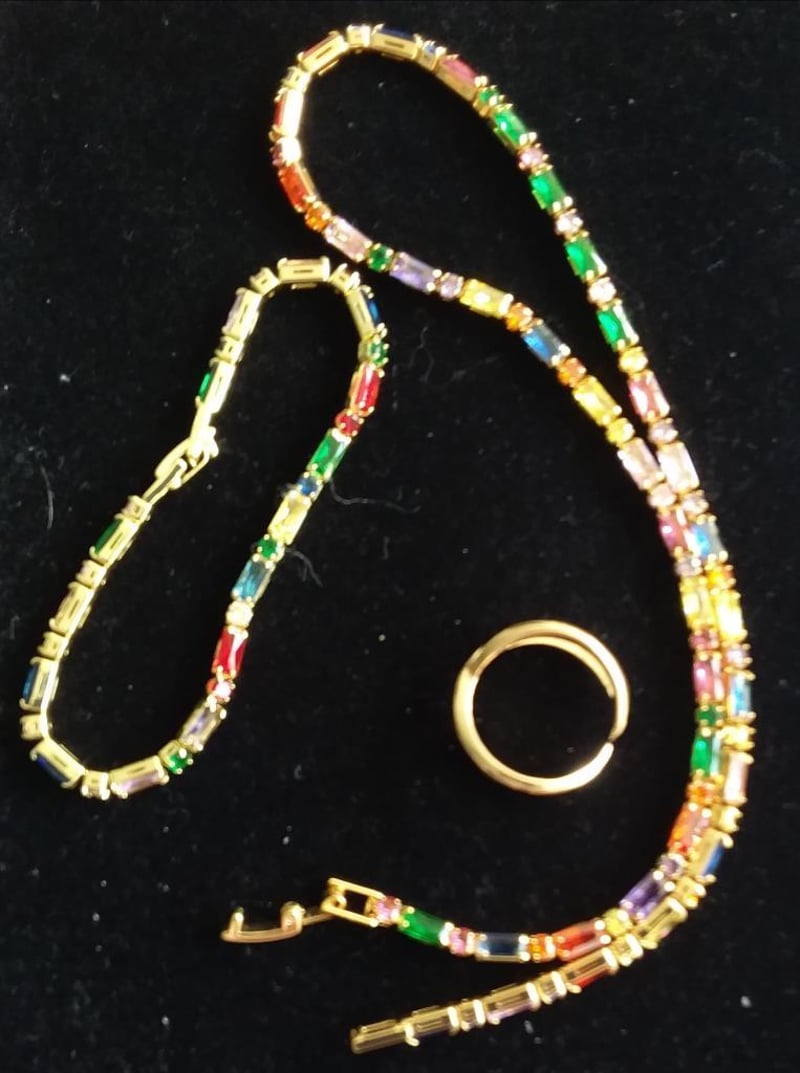 GOLD STAINLESS STEEL CRYSTAL NECKLACE BRACELET WITH RING