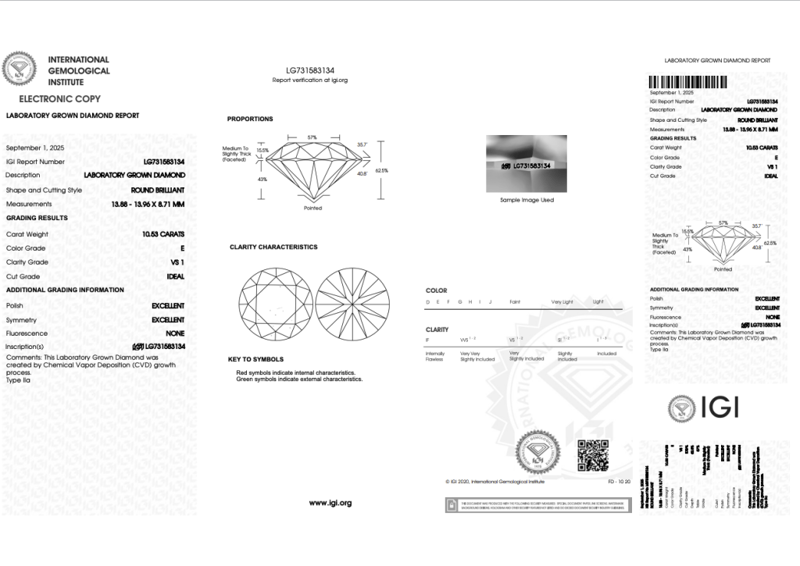 Please note that while all lab grown diamonds listed include certification, the report number or identification may vary upon arrival. This is due to standard manufacturing and batching processes. However, the diamond’s specifications — including carat, color, cut, and clarity — will match or may even exceed those advertised.