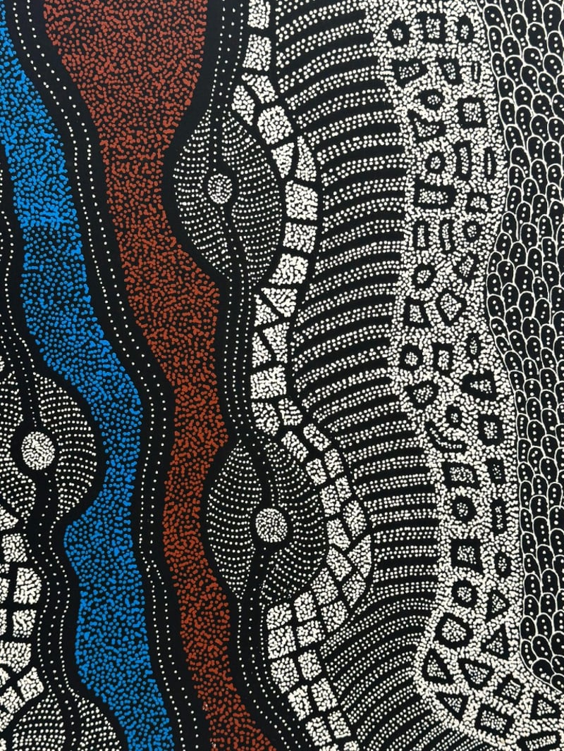 RAYLENE PULA PRICE C/-1969- Original Acrylic Painting On Canvas Title: 'My Country ' Image Size: 96cm x 70cm Condition: Good - Refer To Images 488235+14