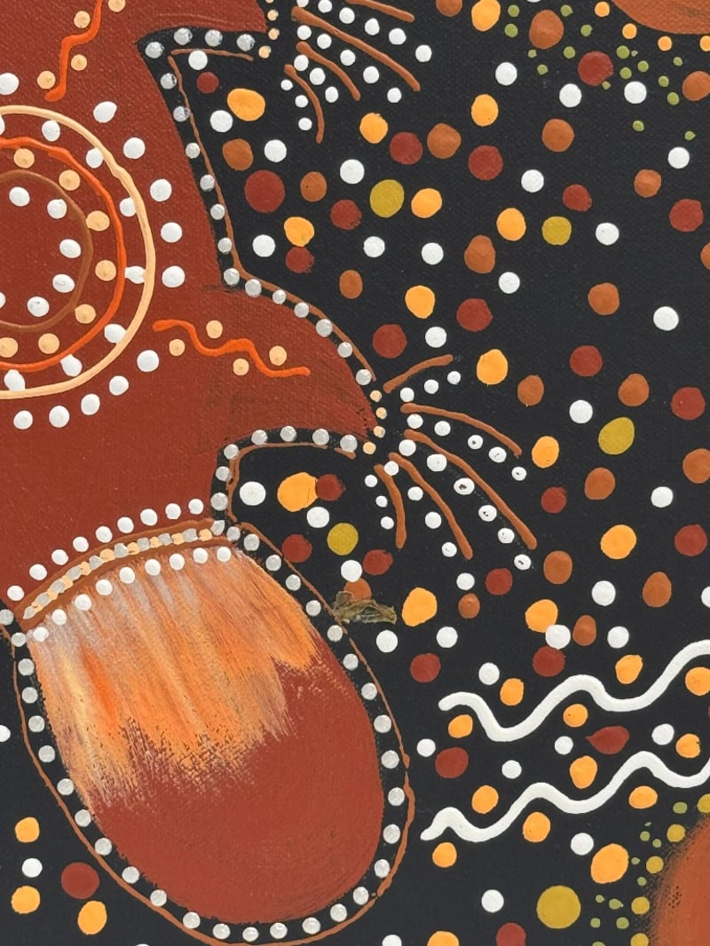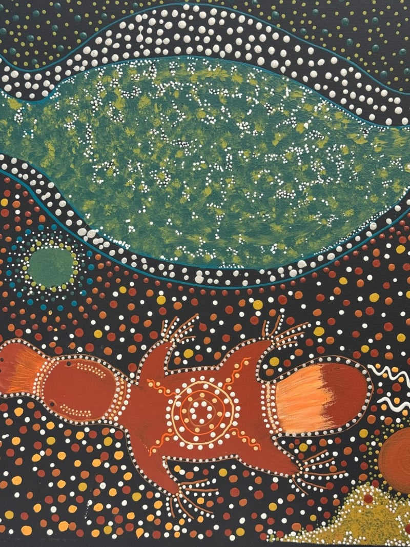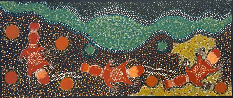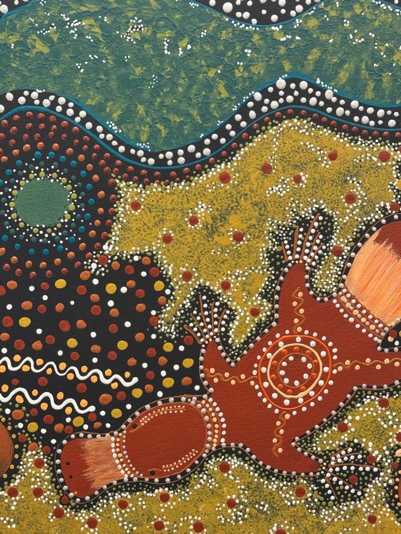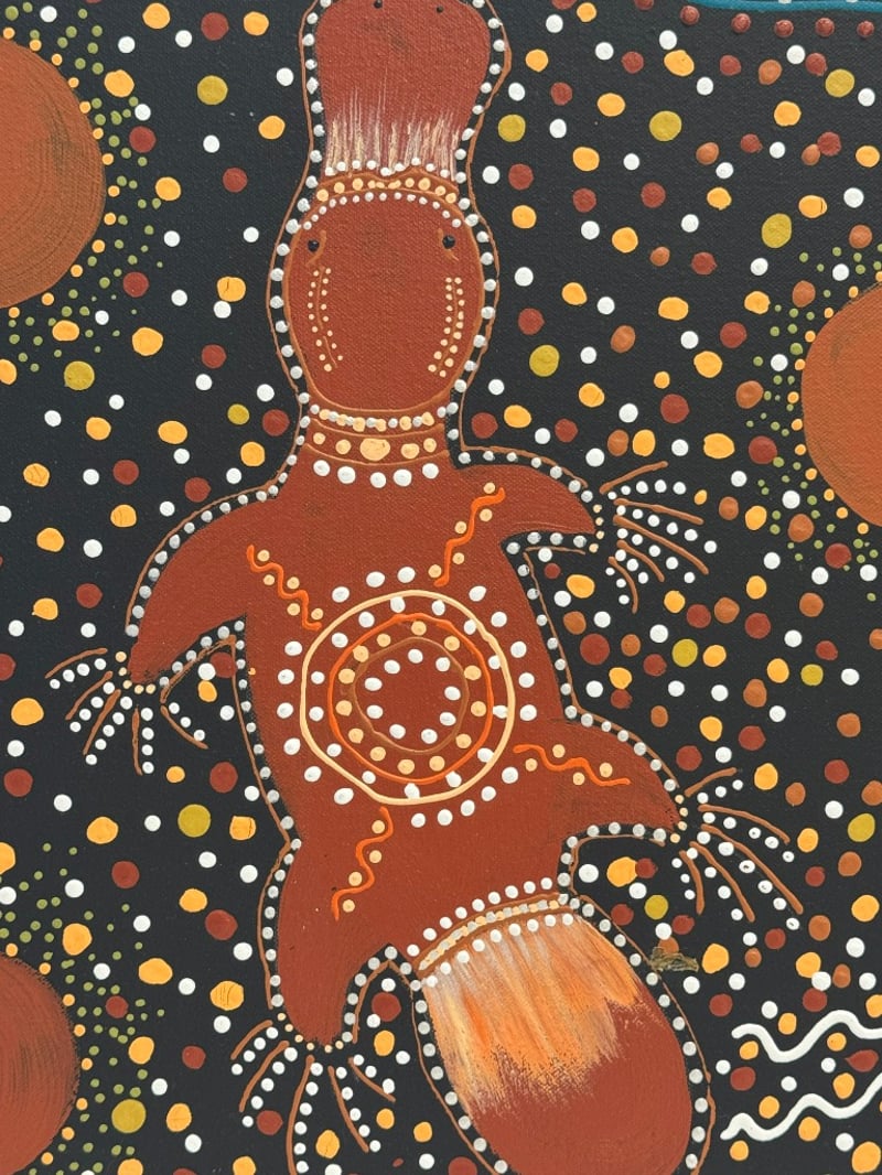 DEIDRE BURGONE ROSER C/-1963- Original Acrylic Painting On Canvas Title: 'Platypus Dreaming' Image Size: 124cm x 54cm Condition: Good - Refer To Images 488235+19