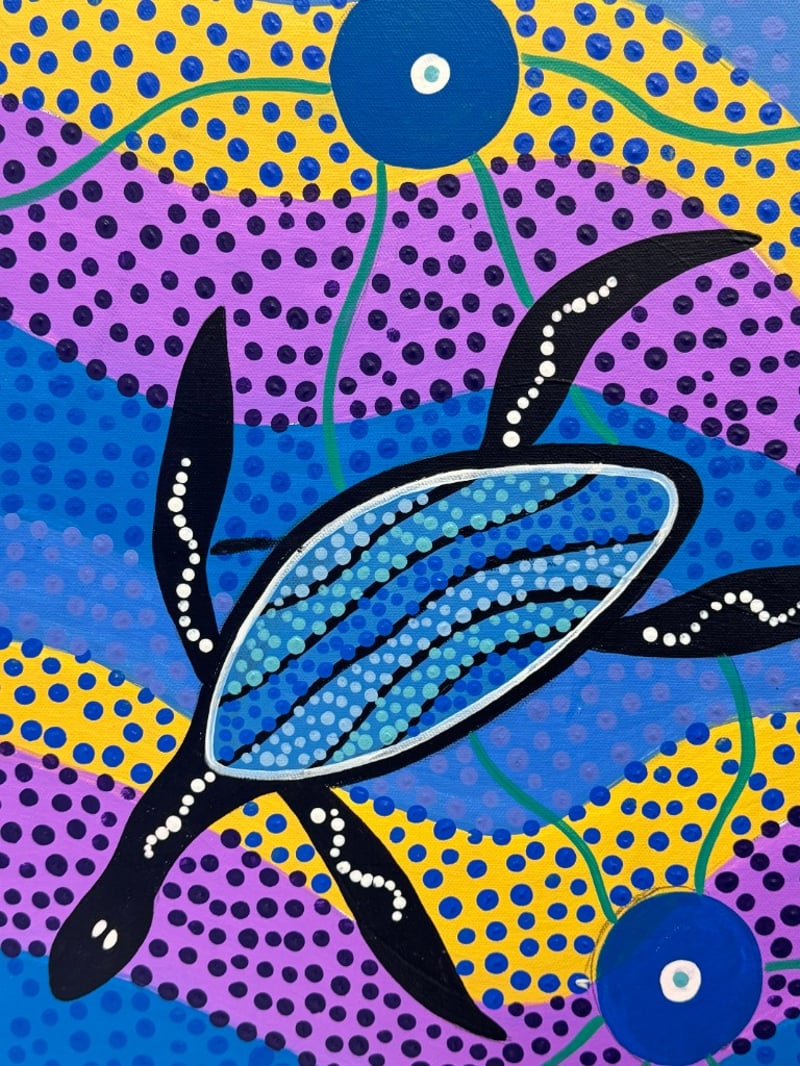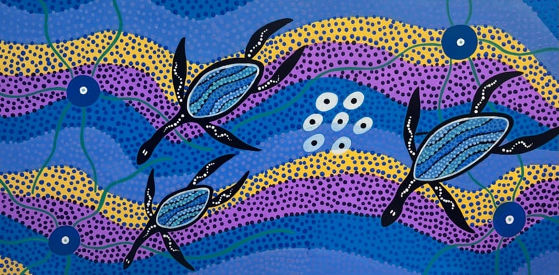 PATI BERTUCCI C/-1969-Original Oil Painting On CanvasTitle: 'Turtles'Image Size: 120cm x 90cmProvenance: Pati Is A Kalkadon Women With Her Totem Being Black Bream Her Artworks Are Highly Sight After And Collected Pati'S Mother Was Aboringinal And Father Italian488235+20