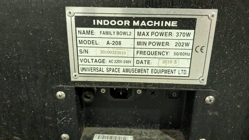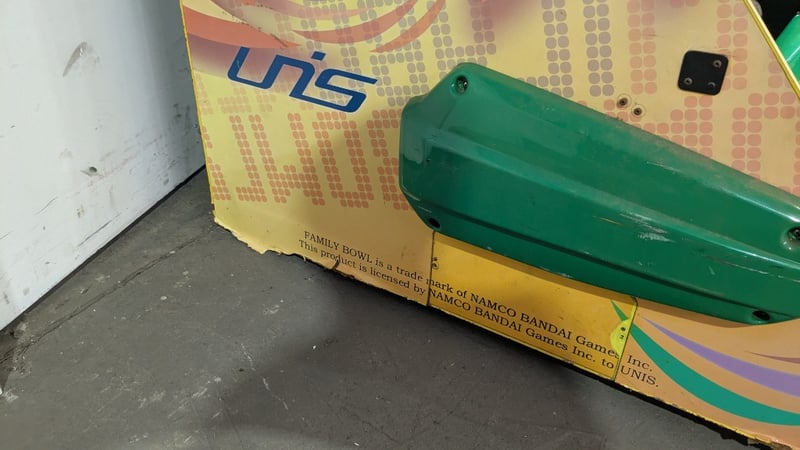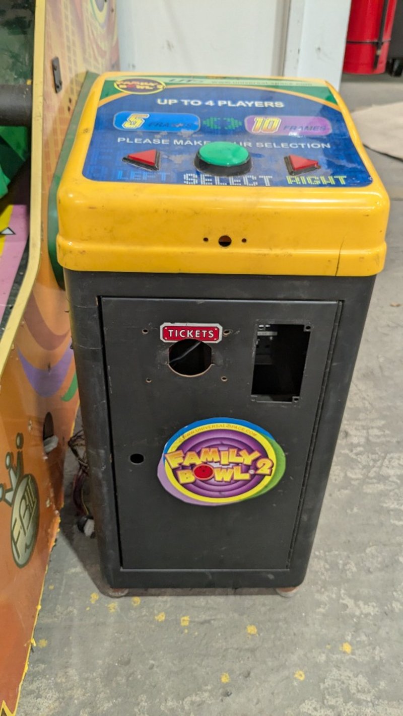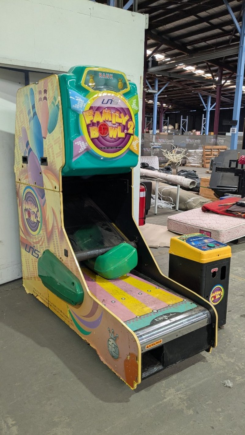 Arcade Machine, Family Bowl 2 Dimensions: 200cm x 120cm x 190cm Note, untested, Suitable for parts, no power cords, damage to wheels