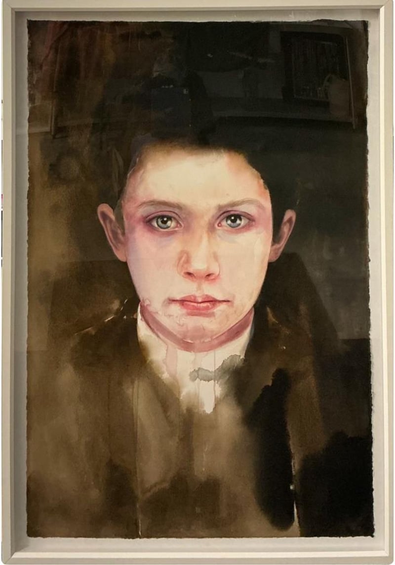 CHERRY HOOD Original Watercolour Painting On French Mould Made Paper Title: Thomas 2010 Frame Size: 150cm x 102cm Condition: Good - Refer To Image 488253+2