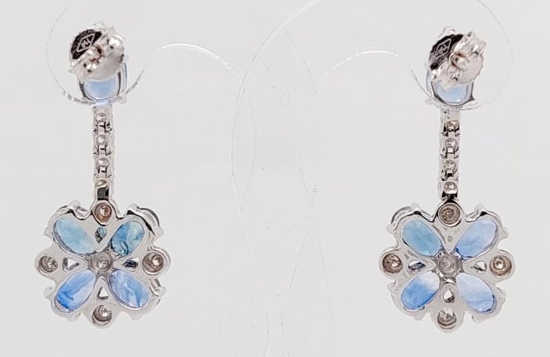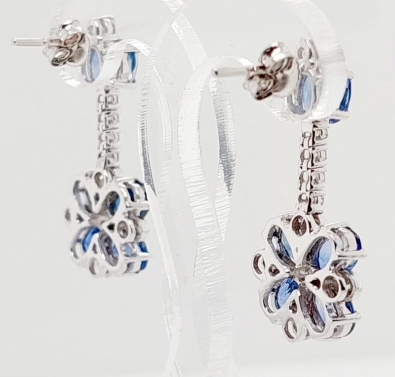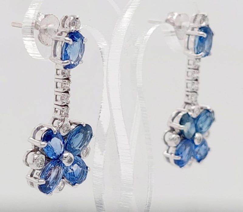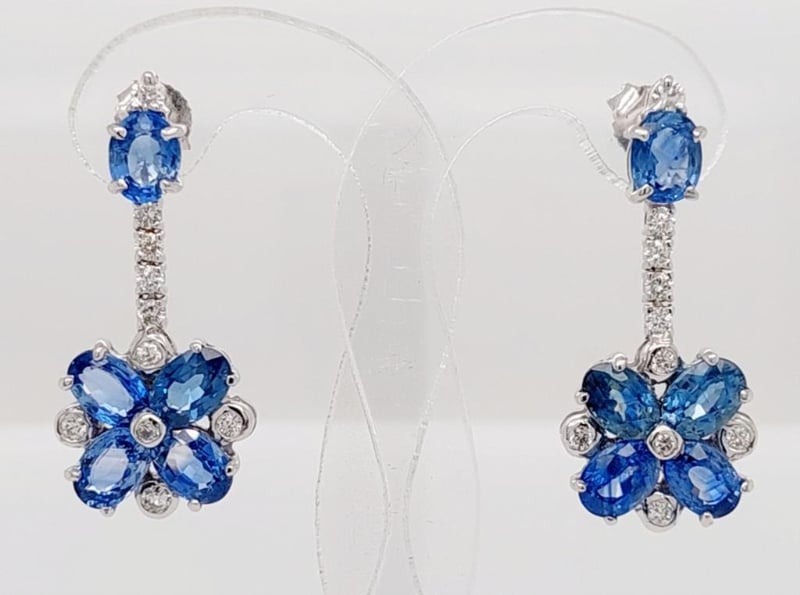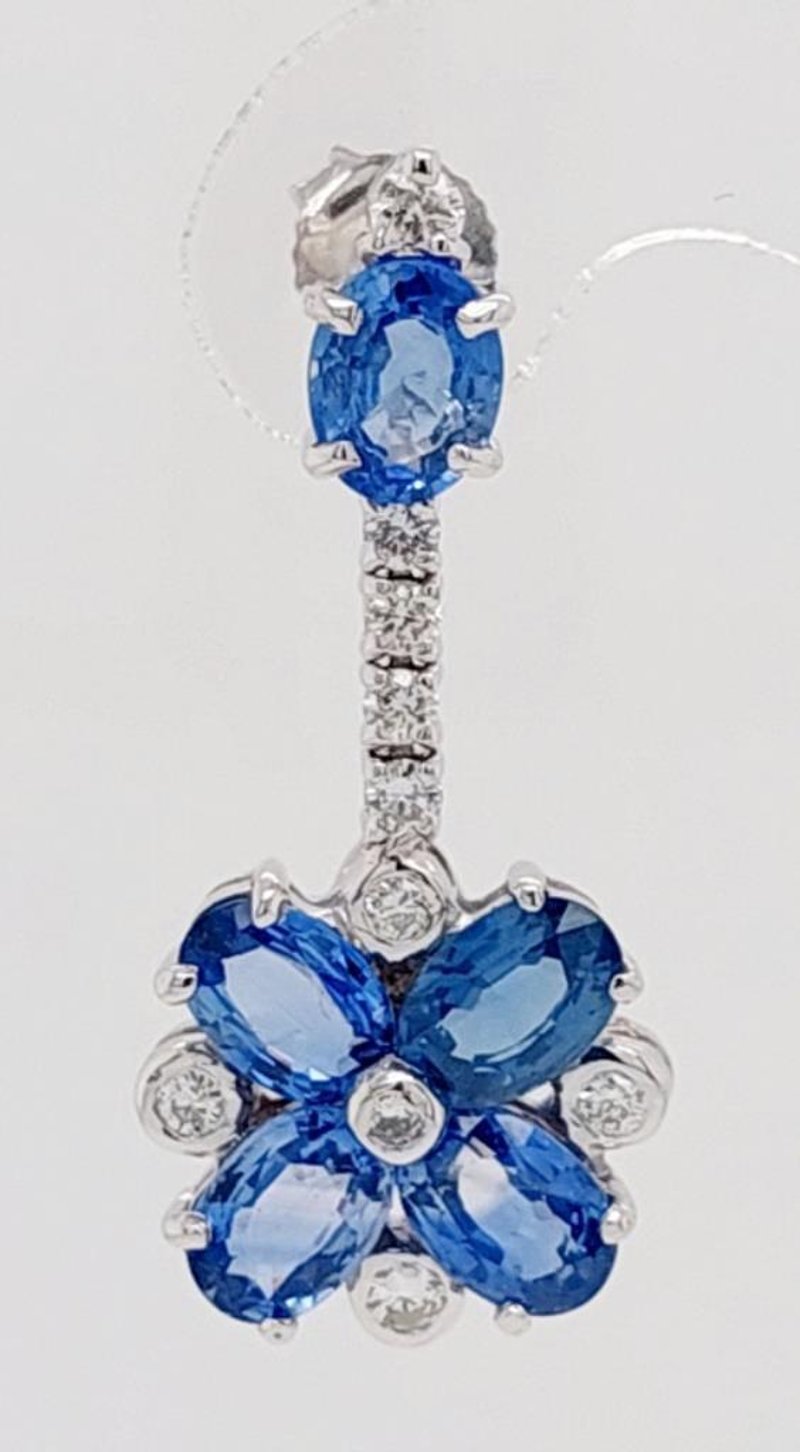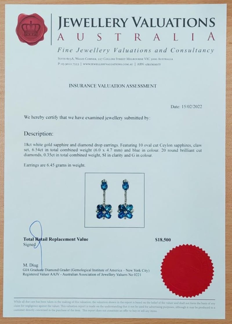 18CT WHITE GOLD CEYLON SAPPHIRE AND DIAMOND DROP EARRINGS Total Item Weight: 6.45gms These 18Ct White Gold Drop Earrings Feature 10 X Oval Cut Claw Set Ceylon Sapphires, 6.54Ct In Total Combined Weight, 6.0Mm X 4.7Mm And Blue In Colour With 20 X Round Brilliant Cut Diamonds, 0.35Ct In Total Combined Weight, Si In Clarity And G In Colour. Markings: 750 Jewellery Valuations Provided By A Third Party Professional Not Directly Associated With Lloyds Auctions at AUD $18500 This Insurance Valuation has been provided by a registered Jewellery Valuer and is intended for insurance purposes only. The valuation amount has no bearing on the auction value of the item. Any questions regarding the valuation should be directed to the issuing Valuer (refer to contact details on the certificate) as Lloyds have no association or relationship with the Valuer or the valuation amount contained within the valuation. Condition: Excellent- Refer Images 0 162901+60 CROSSDOCK