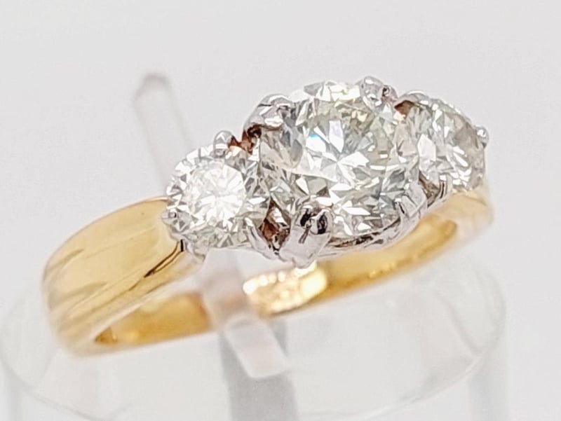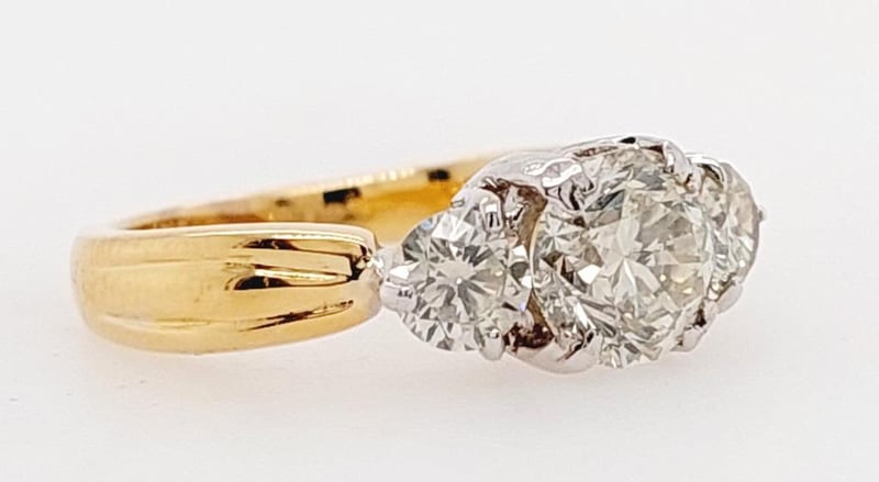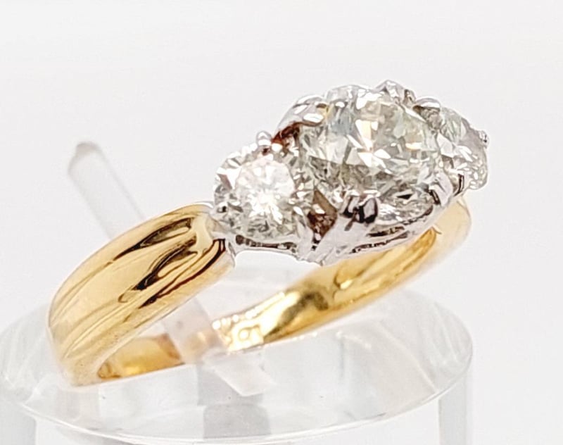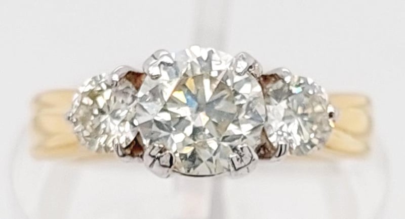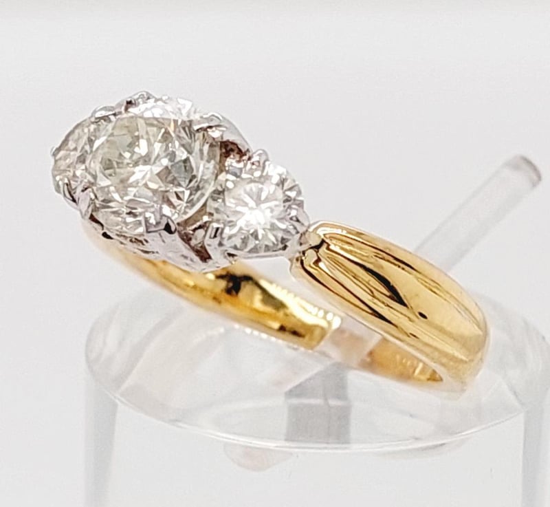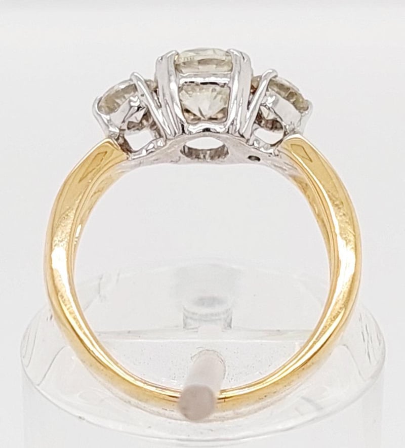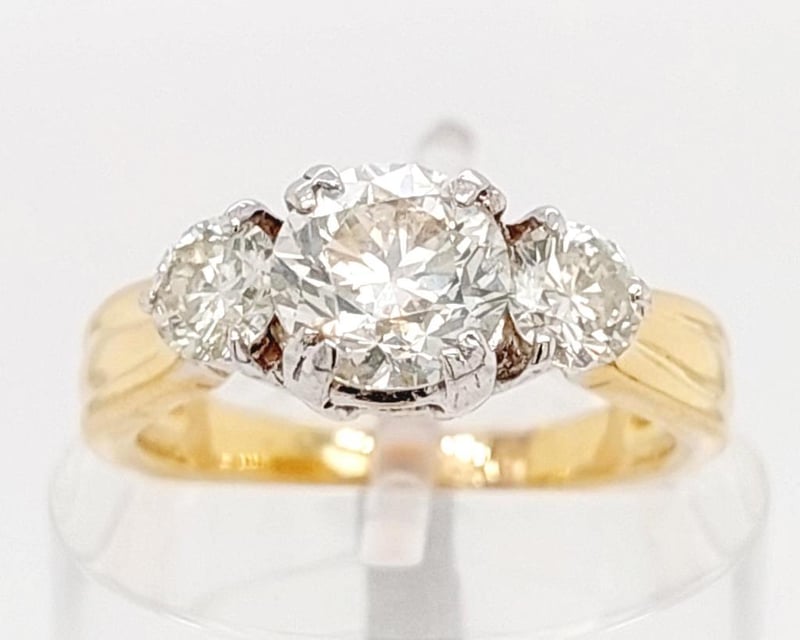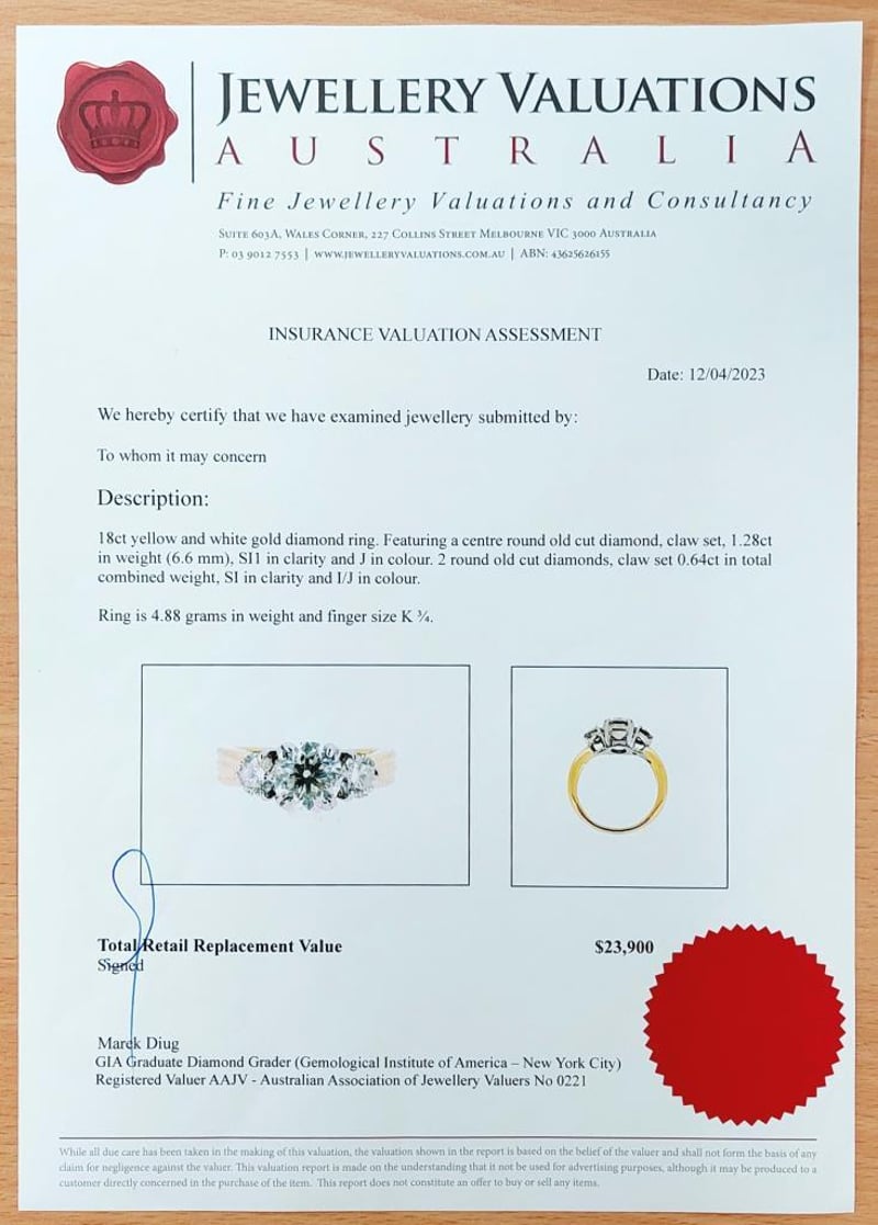 18CT YELLOW AND WHITE GOLD RING Total Item Weight: 4.88gms This 18Ct Yellow And White Gold Diamond Ring Features A 1.28Ct Round Brilliant Old Cut Centre Claw Set Diamond, Measuring 6.6Mm Si1 In Clarity And J In Colour. The Ring Also Features 2 Round Brilliant Old Cut Claw Set Diamonds, 0.64Ct In Total Combined Weight Si In Clarity And I/J In Colour. Dimensions: 6.6Mms Ring Size: K 3/4 Markings: 18K Jewellery Valuations Provided By A Third Party Professional Not Directly Associated With Lloyds Auctions at AUD $23900This Insurance Valuation has been provided by a registered Jewellery Valuer and is intended for insurance purposes only. The valuation amount has no bearing on the auction value of the item. Any questions regarding the valuation should be directed to the issuing Valuer (refer to contact details on the certificate) as Lloyds have no association or relationship with the Valuer or the valuation amount contained within the valuation. Condition: Excellent- Refer Images 0162901+92CROSSDOCK